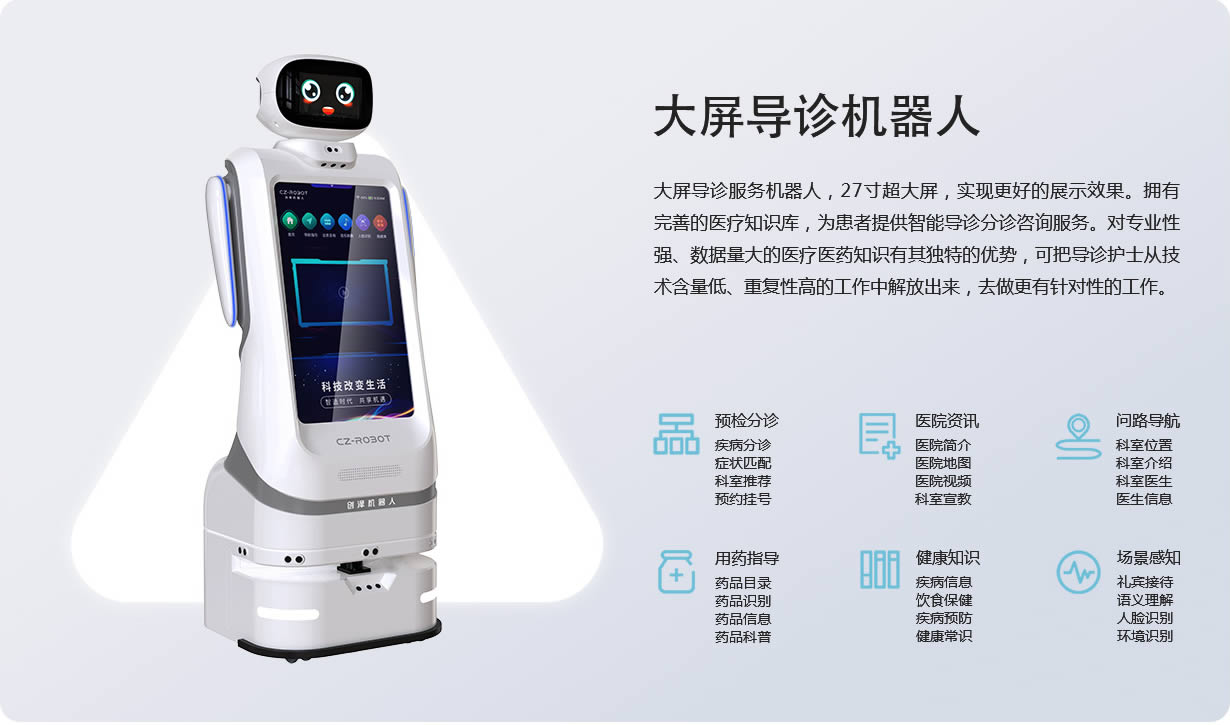 | 患者可以語(yǔ)音問(wèn)詢?cè)簝?nèi)業(yè)務(wù)辦理方法、生活信息、業(yè)務(wù)對(duì)應(yīng)科室、政策信息等常見(jiàn)問(wèn)題,支持人臉識(shí)別、迎賓接待等特色功能,可根據(jù)不同患者類型進(jìn)行心理安撫。 |