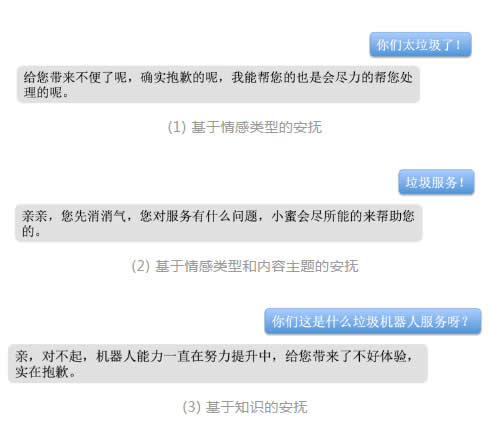 圖 5 給出了在線情感安撫的三個(gè)示例,分別對(duì)應(yīng)上述的三種不同層面的回復(fù)機(jī)制。 表 2:需要安撫的情感分類效果對(duì)比