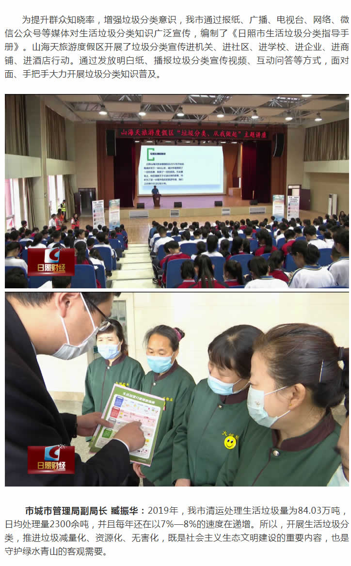 垃圾分類是實現(xiàn)垃圾減量化、資源化、無害化的基礎(chǔ)工作,也是保護環(huán)境,推進生態(tài)文明建設(shè)的重要舉措。今年3月,日照市政府印發(fā)了《日照市城市生活垃圾分類工作實施方案》,明確工作目標(biāo)。