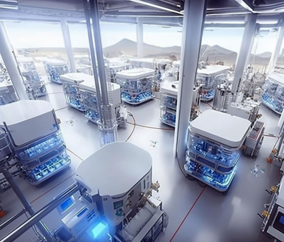 未來云端實驗室可以被建設在太陽能/風能充足的荒漠中,科研人員可以從全世界任意一個地方控制云端實驗室。園區(qū)內(nèi)的兩大主體——數(shù)據(jù)流和物質(zhì)流,將分別由互聯(lián)的AI網(wǎng)絡和機器人網(wǎng)絡負責運載。(本圖由MidJourney + Adobe Firefly生成)
