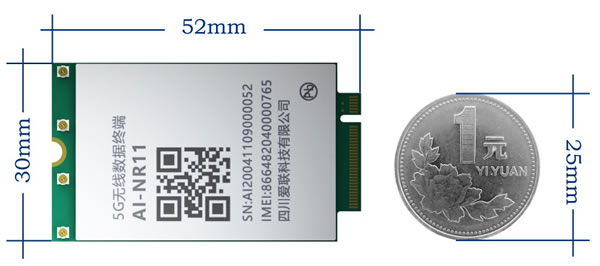 AI-NR11 5G模組采用標(biāo)準(zhǔn)M.2封裝設(shè)計,寬度僅比1元硬幣寬5mm,真正做到了和4G模組同尺寸。采用四天線替代八天線,通過天線輪詢SRS功能,智能快速選出優(yōu)天線方案,有效提升上網(wǎng)速率體驗(yàn)。從一款5G工業(yè)互聯(lián)網(wǎng)模組下線到該模組的成功研發(fā),時間跨度不到5個月。