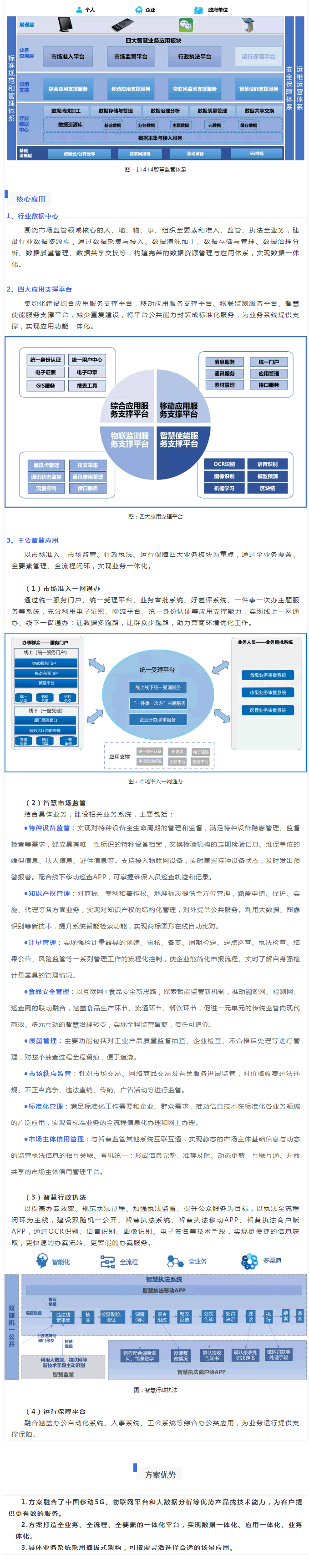 打造1+4+4智慧監(jiān)管體系,即1個(gè)行業(yè)數(shù)據(jù)中心,4大應(yīng)用支撐服務(wù)平臺(tái),4大智慧應(yīng)用板塊,面向個(gè)人、企業(yè)和政府單位三大用戶(hù)群體,提供多渠道、全方位、智能化的信息化服務(wù)。